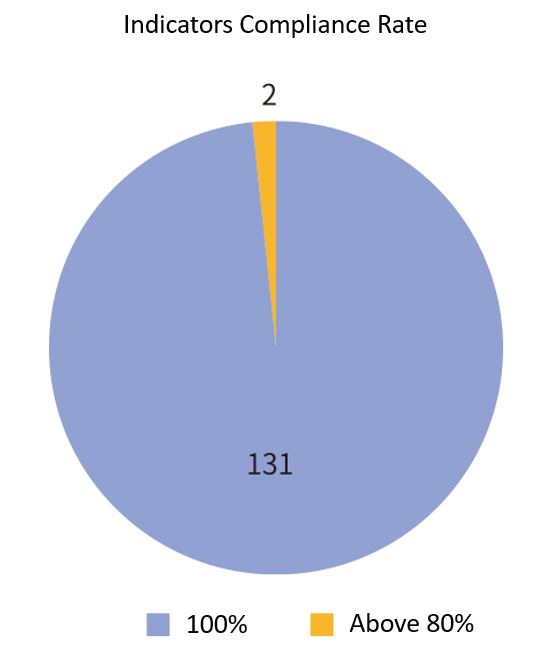 In 2024, FJUH designed 134 monitoring indicators across nine safety goals, achieving a 98.5% compliance rate. Patient safety is one of the hospital's core management priorities. Each indicator is accompanied by oversight and review mechanisms, with regular cross-departmental meetings convened to assess outcomes and develop improvement measures. These efforts strengthen the culture of medical safety and enhance overall quality of care.