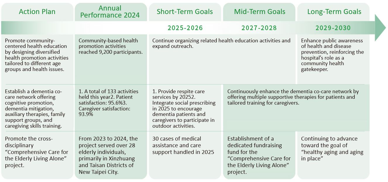 Fu Jen Catholic University Hospital has actively integrated local long-term care resources, collaborating with 110 long-term care institutions to strengthen the effectiveness of community-based healthcare services. In 2024, the hospital's Department of Community Medicine received the First New Taipei City Long-Term Care Excellence Award, becoming the first regional hospital in New Taipei City to earn this honor.