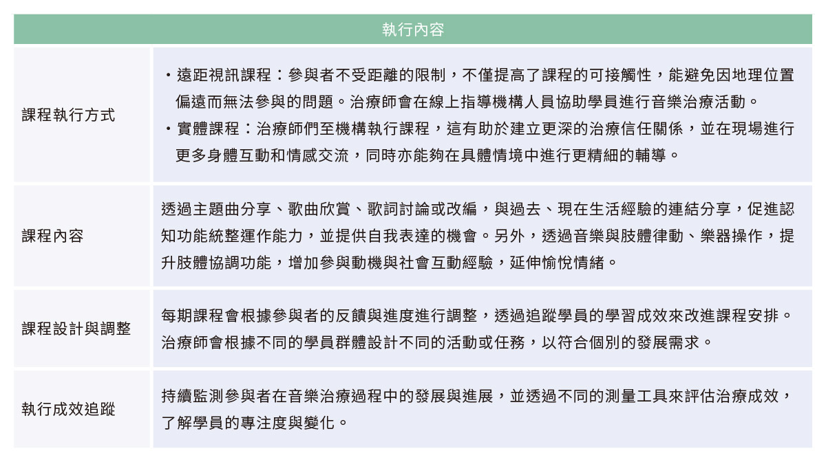疫情期間實體義診服務受阻及遠距醫療技術發展與政策推動,亦揭示偏鄉醫療資源長期不均問題。基於此,醫療團隊提出「遠距音樂輔助療育」的創新構想,結合遠距與非藥物治療方式,開創具延續性與人文關懷的偏鄉照護新模式。整合多方資源協作,針對偏鄉兒童之早期發展與高齡長者之失能延緩提供音樂治療服務,透過遠距平台突破地理限制,提升資源觸及性,同時保留實體課程以強化治療互動與信任關係。並設有系統性追蹤機制,以監測學習成效與治療影響,確保每位學員皆能獲得符合其個別需求的最佳照護,藉由此模式展現本院在偏鄉健康促進與跨世代照護服務創新之具體實踐。2024年受惠族群包含早療兒童及高齡年長者,已服務人數達1,167人次。