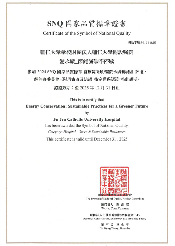 輔大醫院響應《聯合國氣候變化綱要公約》及《巴黎協定》等國際氣候規範,積極履行環境保護責任,導入 ISO 14064-1:2018